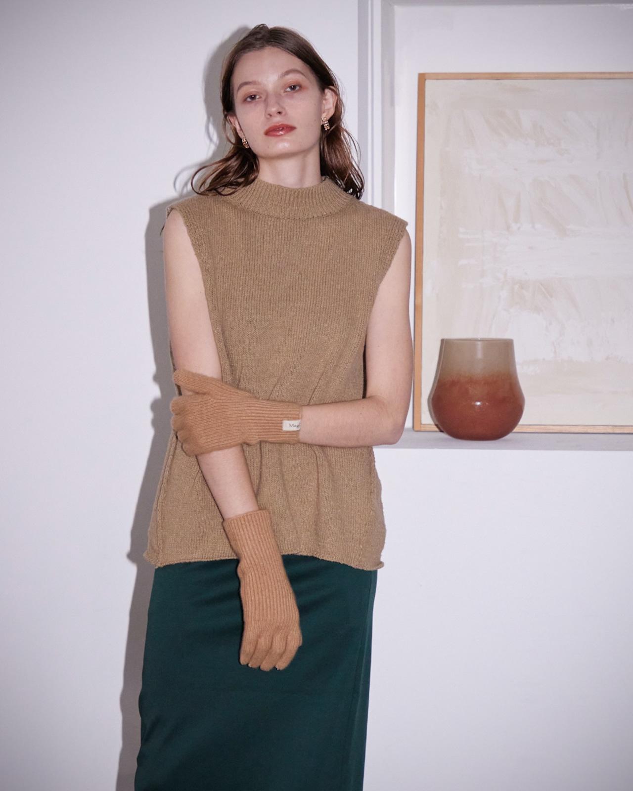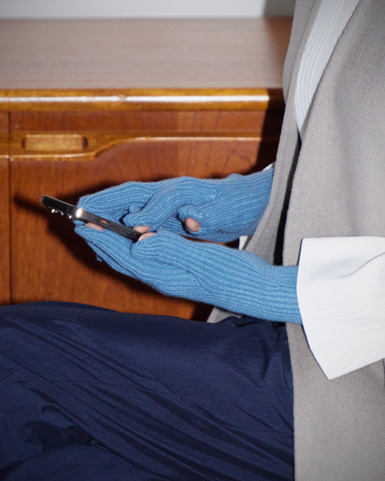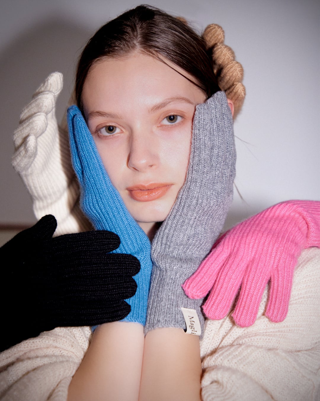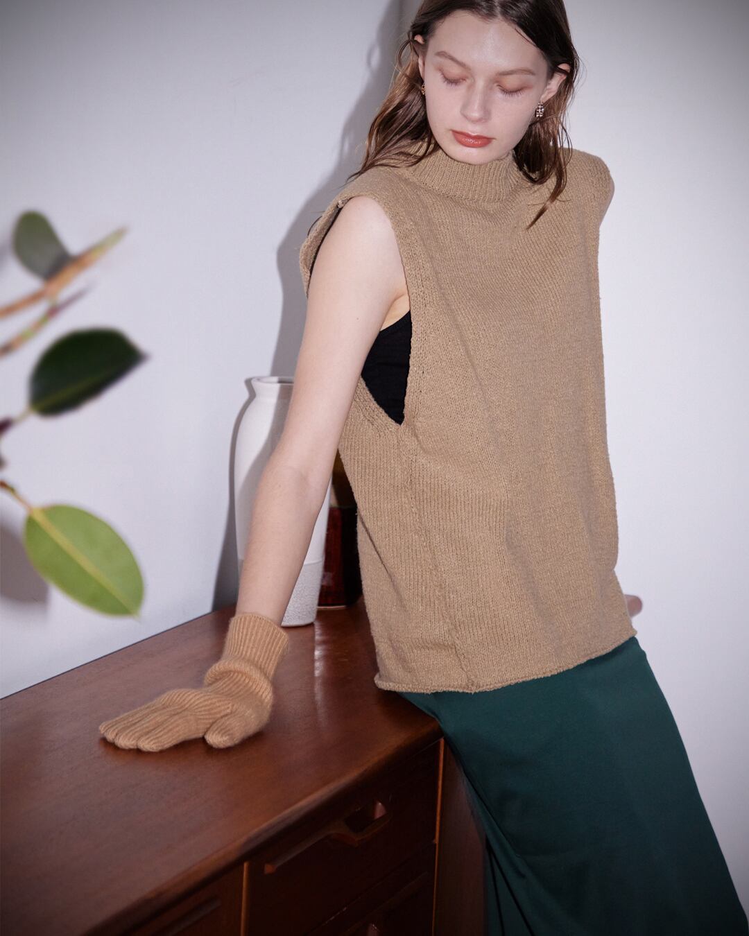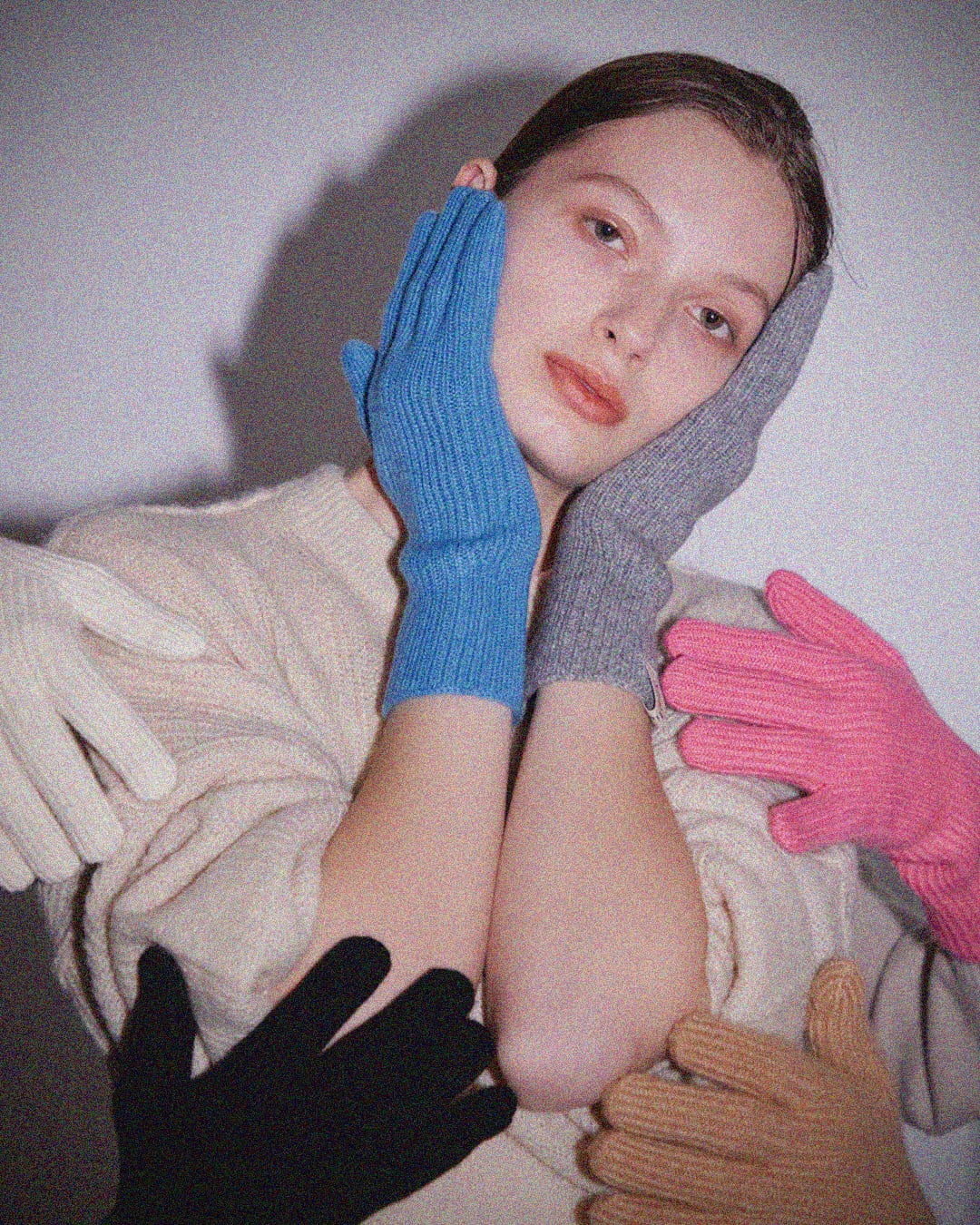 柔らかく保温性と保湿性に優れたカシミヤ糸を使用。ヌメリ感のある優しい肌触りが特徴です。縫い目のないホールガーメント仕様で快適な装着感を味わえます。人差し指と親指にはスリットを入れており、グローブをつけたままタッチパネルを操作できる仕様です。